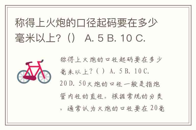 称得上火炮的口径起码要在多少毫米以上?() A. 5 B. 10 C. 20 D. 50