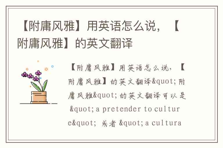 【附庸风雅】用英语怎么说,【附庸风雅】的英文翻译