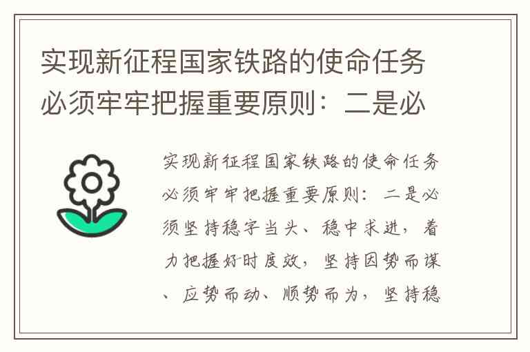 实现新征程国家铁路的使命任务必须牢牢把握重要原则:二是必须坚持稳字当头、稳中求进,着力把握好时度效,坚持因势而谋、应势而动、顺势而为,坚持稳扎稳打、循序渐进、持续推进,坚决确保铁路安全稳定、( )、大局稳定,在“稳”的基础上实现铁路高质量发展的“进”。 A. 思想稳定 B. 队伍稳定 C. 安全稳定 D. 生产稳定