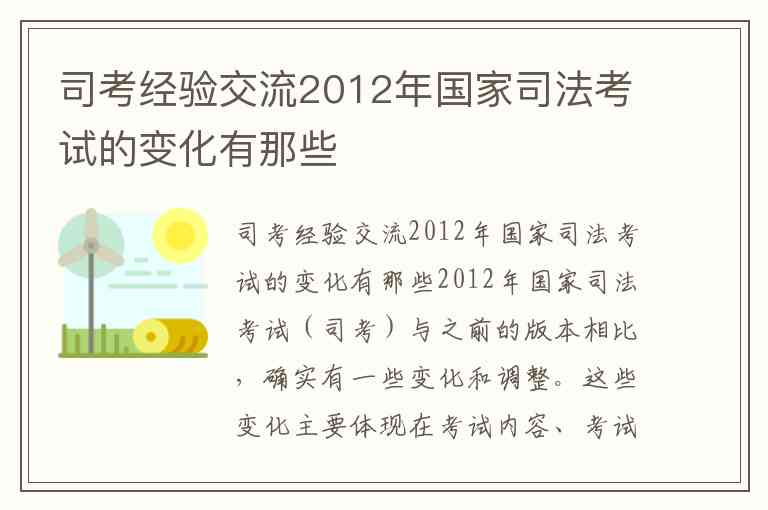 2012年国家司法考试(司考)与之前的版本相比,确实有一些变化和调整。这些变化主要体现在考试内容、考试形式以及相关政策方面。具体来说,2012年的司法考试变化主要有以下几个方面: