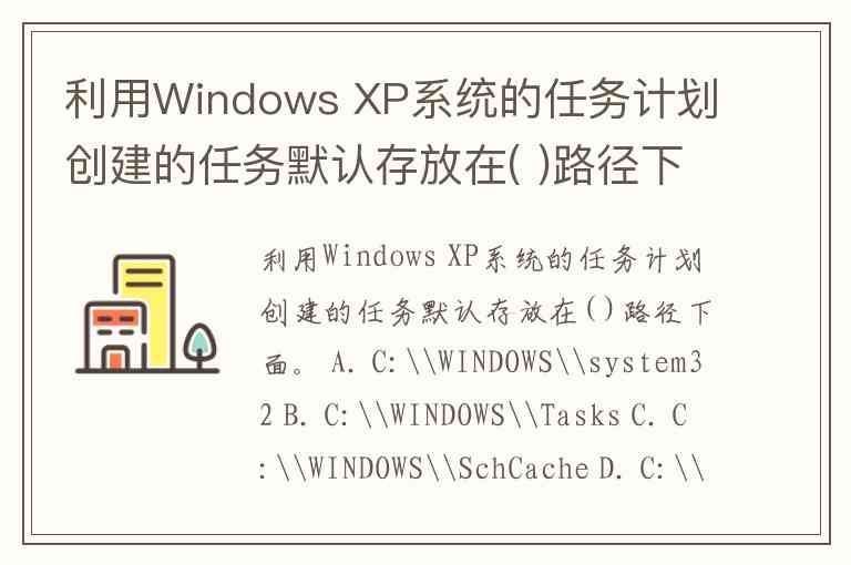 利用Windows XP系统的任务计划创建的任务默认存放在( )路径下面。 A. C:\WINDOWS\system32 B. C:\WINDOWS\Tasks C. C:\WINDOWS\SchCache D. C:\WINDOWS\Config