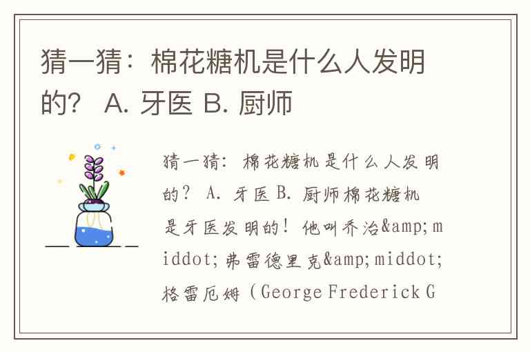 猜一猜:棉花糖机是什么人发明的? A. 牙医 B. 厨师