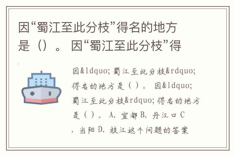 因“蜀江至此分枝”得名的地方是()。 因“蜀江至此分枝”得名的地方是()。 A. 宜都 B. 丹江口 C. 当阳 D. 枝江