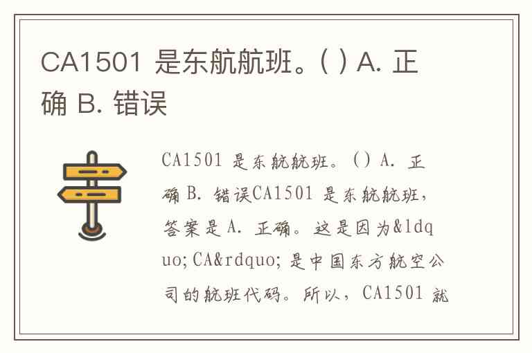 CA1501 是东航航班。( ) A. 正确 B. 错误