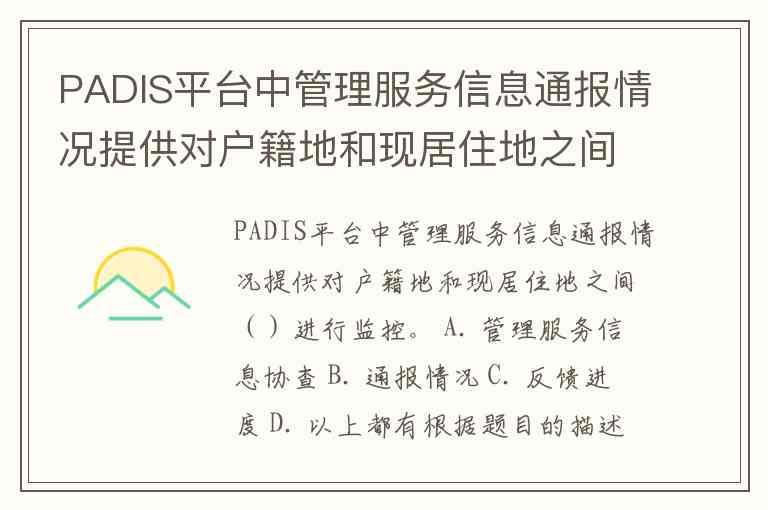 根据题目的描述,PADIS平台中管理服务信息通报情况涉及到户籍地和现居住地之间的信息监控,通常会涉及到通报、反馈等多个方面。