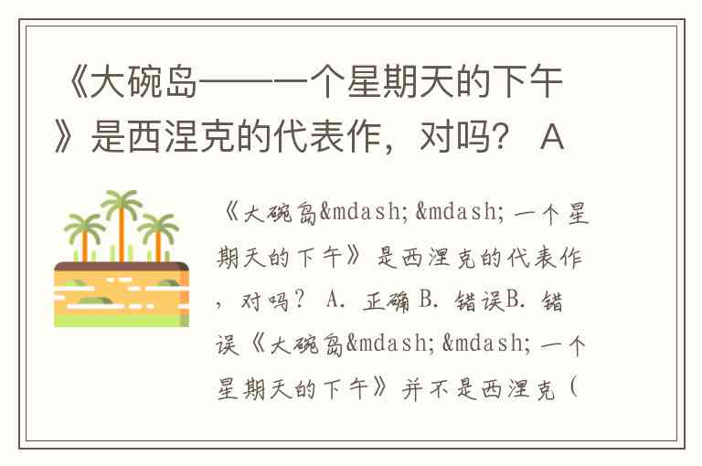 《大碗岛——一个星期天的下午》并不是西涅克(Georges Seurat)的代表作。西涅克的代表作是《大碗岛的星期日下午》(A Sunday Afternoon on the Island of La Grande Jatte),这幅画是他最著名的作品之一,也标志着他对点彩技法的运用。