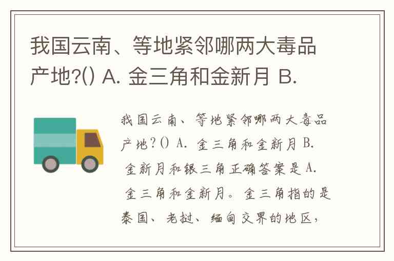 我国云南、等地紧邻哪两大毒品产地?() A. 金三角和金新月 B. 金新月和银三角