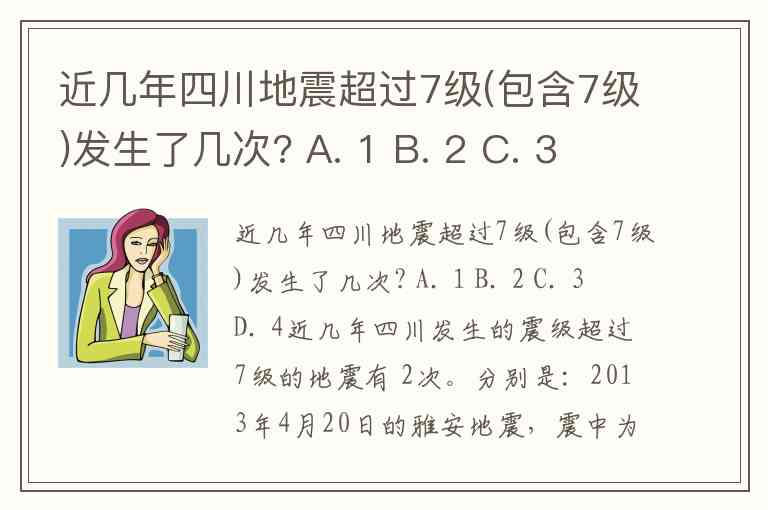 近几年四川地震超过7级(包含7级)发生了几次? A. 1 B. 2 C. 3 D. 4