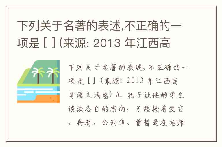 A. 《论语》中确实有孔子让学生谈论各自的志向的情节,而子路抢着发言,冉有、公西华、曾皙是在老师点名后才发言,最后曾皙的发言得到了老师的赞许。所以这个表述是正确的。