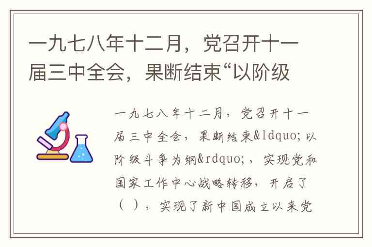 1978年12月,党的十一届三中全会标志着中国进入了改革开放和社会主义现代化建设的新时期。会议上,党果断结束了“以阶级斗争为纲”的错误路线,转而实施改革开放政策,推动经济发展和社会进步。这一战略转移被认为是新中国历史上具有深远意义的伟大转折。