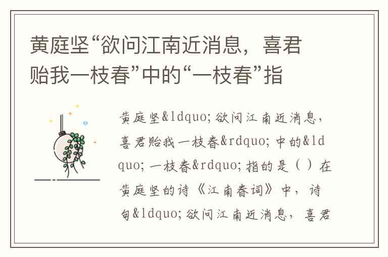 在黄庭坚的诗《江南春词》中,诗句“欲问江南近消息,喜君贻我一枝春”中的“一枝春”指的是春天的一枝花。这一句诗表达了诗人对江南春天的向往与喜爱,同时通过“一枝春”来象征江南的春景和生机勃勃。