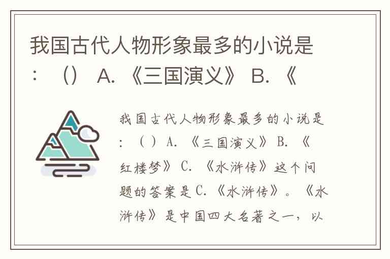 我国古代人物形象最多的小说是:() A. 《三国演义》 B. 《红楼梦》 C. 《水浒传》