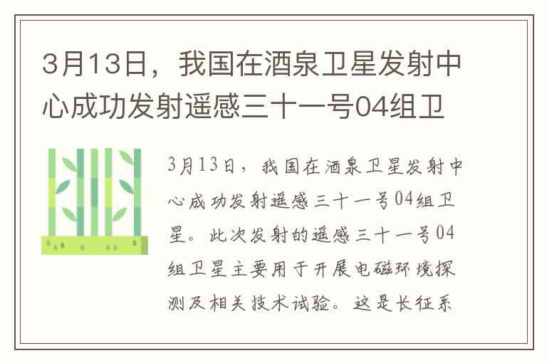 3月13日,我国在酒泉卫星发射中心成功发射遥感三十一号04组卫星。此次发射的遥感三十一号04组卫星主要用于开展电磁环境探测及相关技术试验。这是长征系列运载火箭的第363次飞行。遥感三十一号04组卫星由( )运载火箭运载发射。 A. 长征五号甲 B. 长征四号甲 C. 长征五号乙 D. 长征四号丙