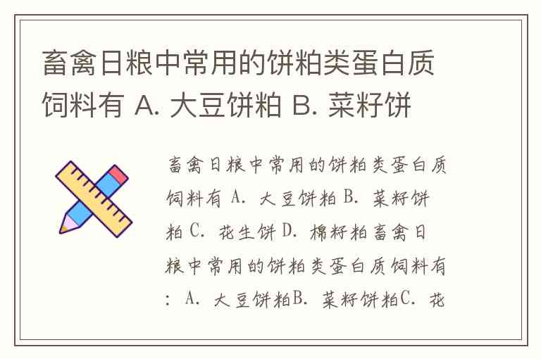 畜禽日粮中常用的饼粕类蛋白质饲料有 A. 大豆饼粕 B. 菜籽饼粕 C. 花生饼 D. 棉籽粕