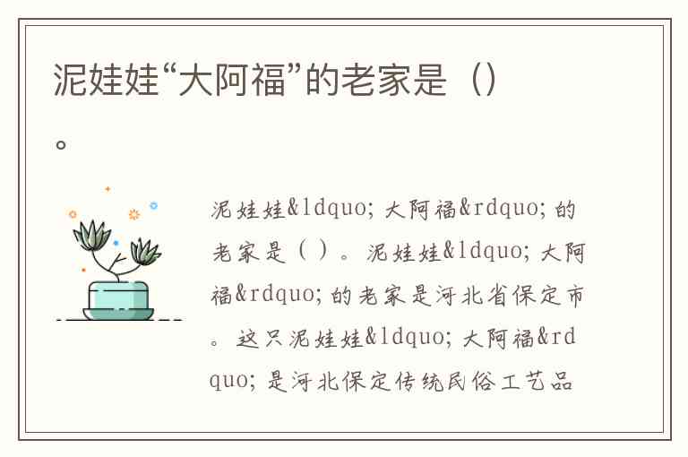 泥娃娃“大阿福”的老家是()。