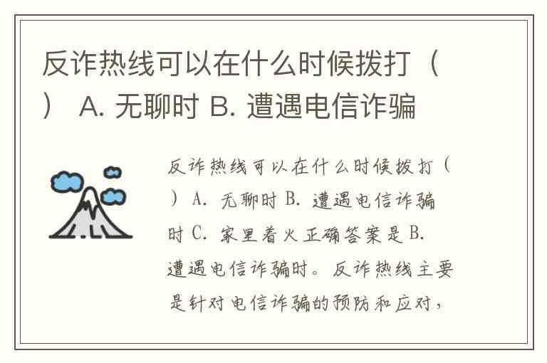 反诈热线可以在什么时候拨打() A. 无聊时 B. 遭遇电信诈骗时 C. 家里着火