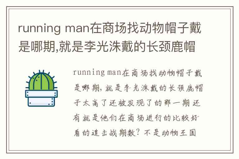 running man在商场找动物帽子戴是哪期,就是李光洙戴的长颈鹿帽子太高了还被发现了的那一期 还有就是他们在商场进行的比较好看的追击战期数? 不是动物王国那期哦!