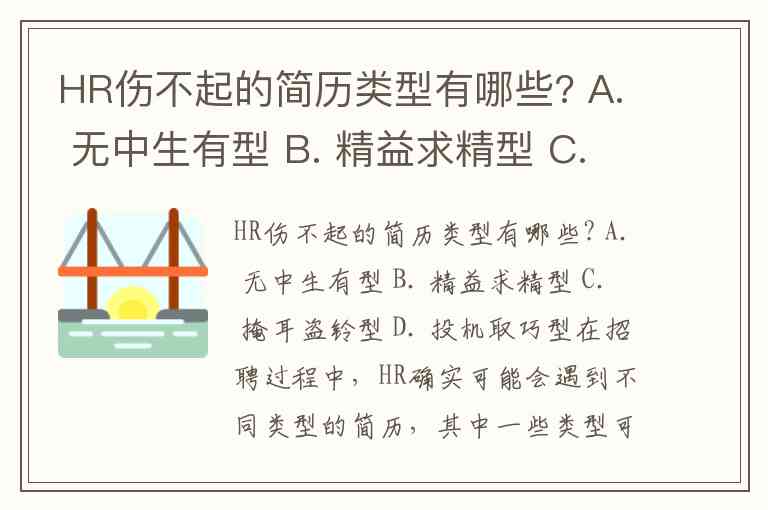 在招聘过程中,HR确实可能会遇到不同类型的简历,其中一些类型可能让HR感到“伤不起”。根据你提供的选项,下面是对这些类型的简要分析: