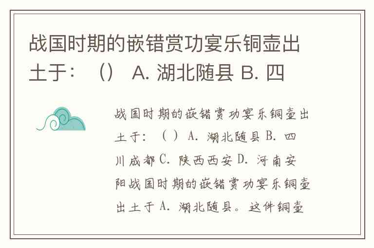 战国时期的嵌错赏功宴乐铜壶出土于:() A. 湖北随县 B. 四川成都 C. 陕西西安 D. 河南安阳