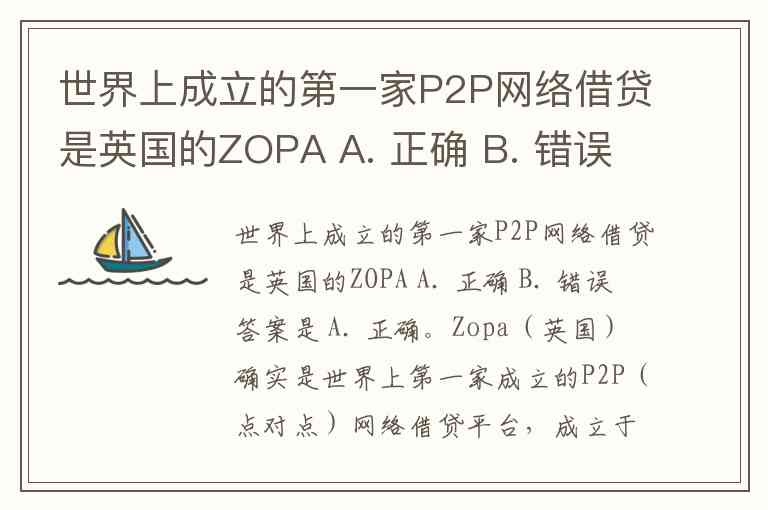 Zopa(英国)确实是世界上第一家成立的P2P(点对点)网络借贷平台,成立于2005年。它为借款人和投资者提供了一个平台,绕过了传统的银行系统,允许个人直接借贷。这种模式随后被全球范围内的其他P2P借贷平台所采纳。