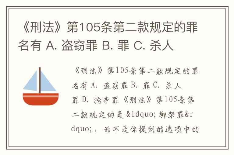 《刑法》第105条第二款规定的是 “绑架罪”,而不是你提到的选项中的任何一项。具体来说,该条款规定的是: “绑架罪” 指的是以勒索财物为目的,绑架他人或者非法拘禁他人。