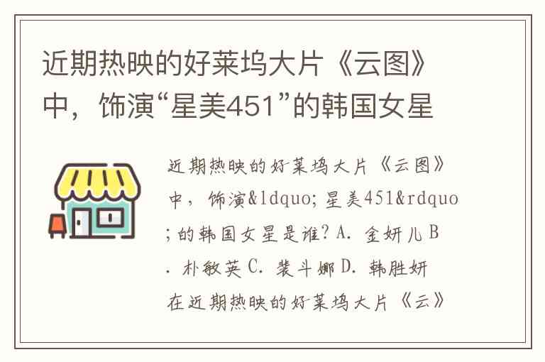 近期热映的好莱坞大片《云图》中,饰演“星美451”的韩国女星是谁? A. 金妍儿 B. 朴敏英 C. 裴斗娜 D. 韩胜妍