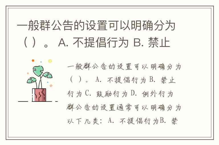 一般群公告的设置可以明确分为( )。 A. 不提倡行为 B. 禁止行为 C. 鼓励行为 D. 例外行为