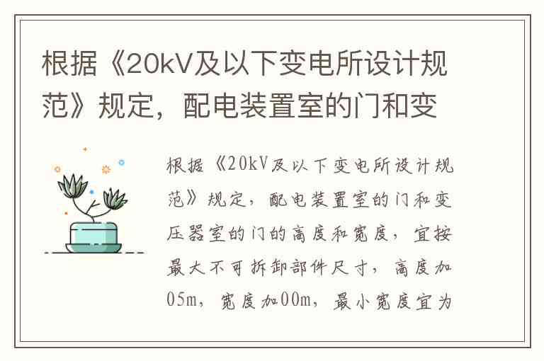 根据《20kV及以下变电所设计规范》规定,配电装置室的门和变压器室的门的高度和宽度,应该根据最大不可拆卸部件的尺寸来确定。一般情况下,门的高度应比最大部件的高度大0.5米,门的宽度应比最大部件的宽度大0.2米,最小宽度应为750mm。