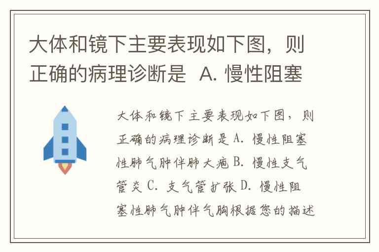 大体和镜下主要表现如下图,则正确的病理诊断是 A. 慢性阻塞性肺气肿伴肺大疱 B. 慢性支气管炎 C. 支气管扩张 D. 慢性阻塞性肺气肿伴气胸