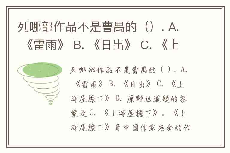 列哪部作品不是曹禺的(). A. 《雷雨》 B. 《日出》 C. 《上海屋檐下》 D. 原野