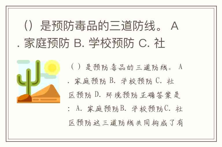 ()是预防毒品的三道防线。 A. 家庭预防 B. 学校预防 C. 社区预防 D. 环境预防