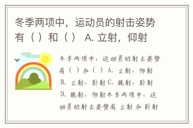 冬季两项中,运动员的射击姿势有( )和( ) A. 立射,仰射 B. 立射,卧射 C. 跪射,卧射 D. 跪射,仰射