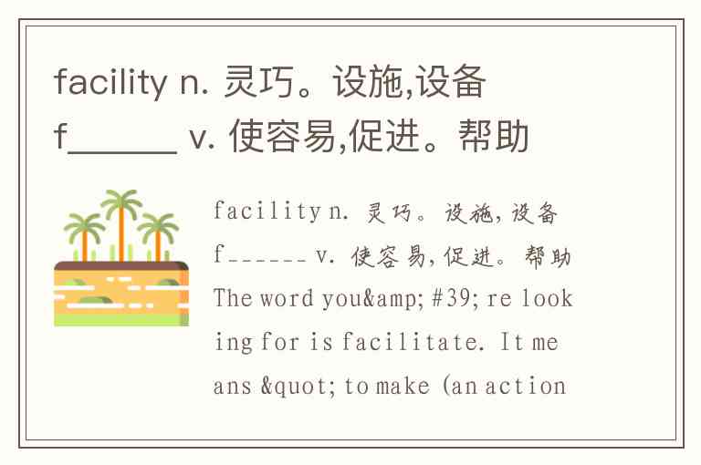 facility n. 灵巧。设施,设备 f______ v. 使容易,促进。帮助