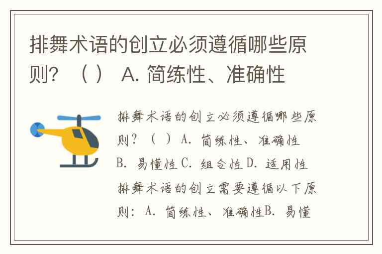 排舞术语的创立必须遵循哪些原则?( ) A. 简练性、准确性 B. 易懂性 C. 组合性 D. 适用性