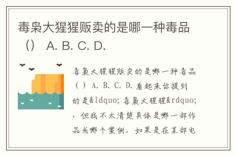 毒枭大猩猩贩卖的是哪一种毒品() A. B. C. D.
