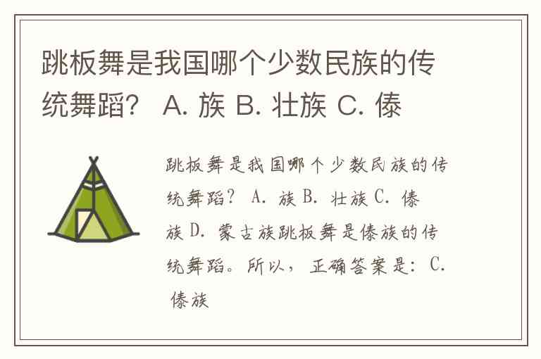 跳板舞是我国哪个少数民族的传统舞蹈? A. 族 B. 壮族 C. 傣族 D. 蒙古族