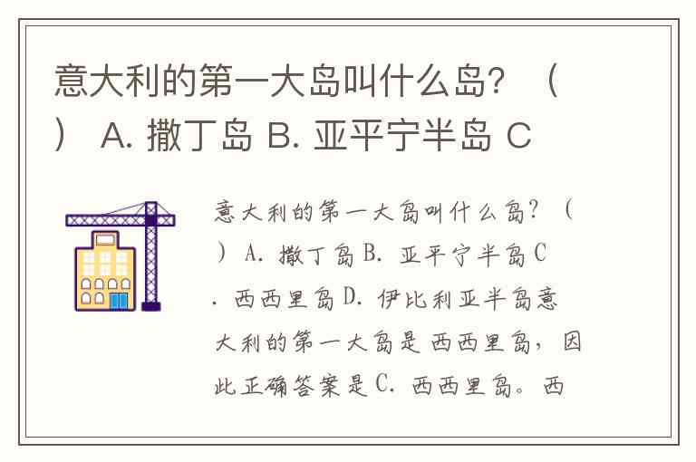 意大利的第一大岛叫什么岛?() A. 撒丁岛 B. 亚平宁半岛 C. 西西里岛 D. 伊比利亚半岛