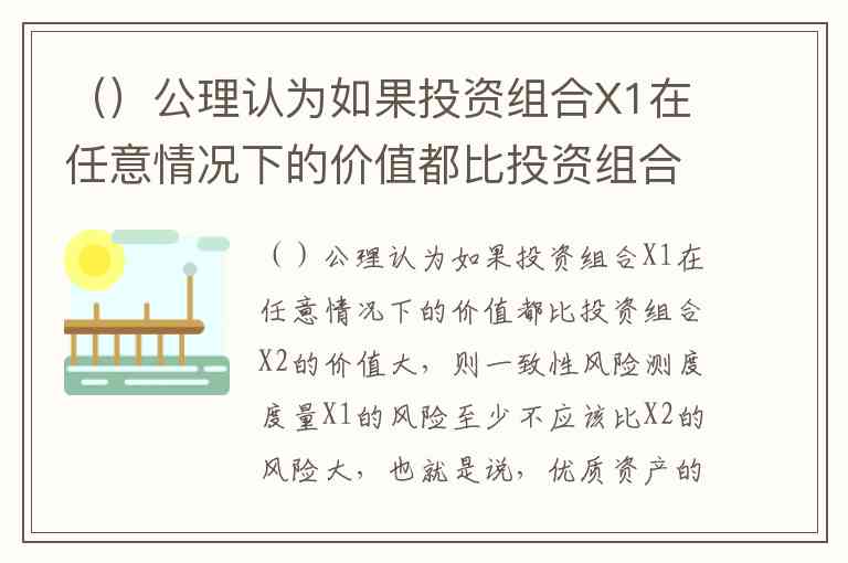 这个问题描述的是一种关于风险测度的性质。根据描述,优质资产的风险不应比劣质资产的风险大,这符合 单调性 原则。