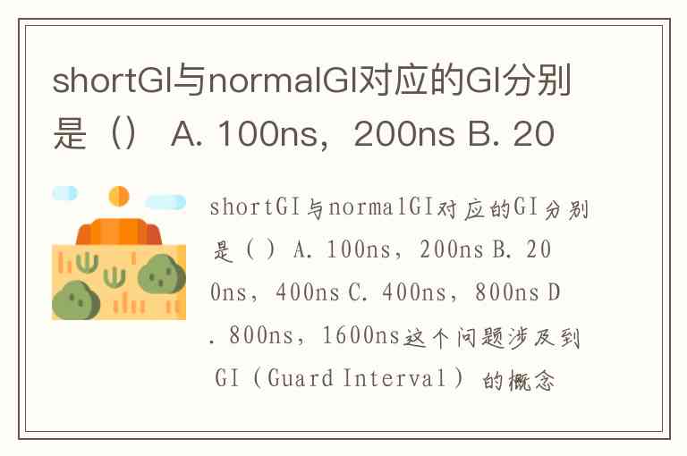shortGI与normalGI对应的GI分别是() A. 100ns,200ns B. 200ns,400ns C. 400ns,800ns D. 800ns,1600ns