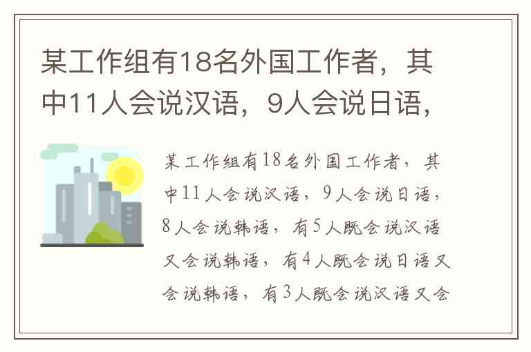 只会一种语言的人数是 4+3+0=7,但总人数是18人,说明会说至少一种语言的人总数应该是18人。因此我们推测可能没有会说三种语言的人,且通过这些推算出: