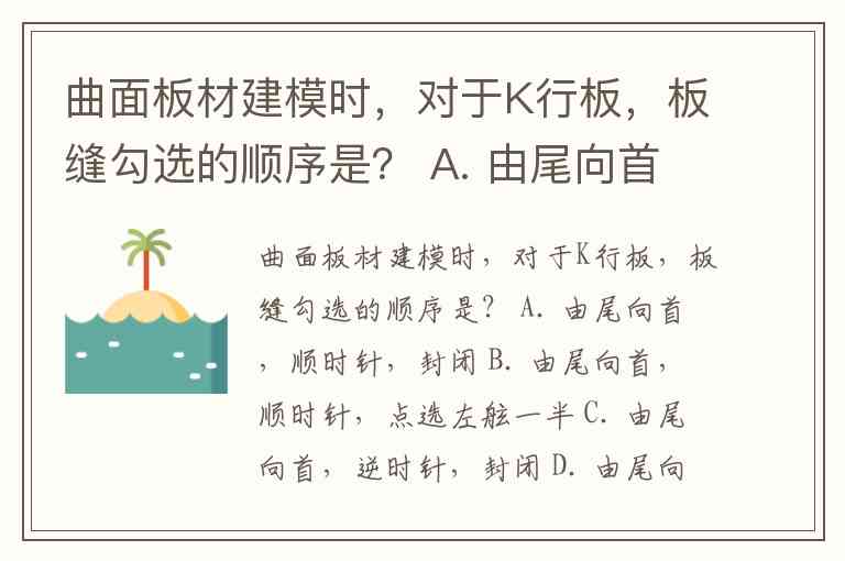 曲面板材建模时,对于K行板,板缝勾选的顺序是? A. 由尾向首,顺时针,封闭 B. 由尾向首,顺时针,点选左舷一半 C. 由尾向首,逆时针,封闭 D. 由尾向首,逆时针,点选左舷一半
