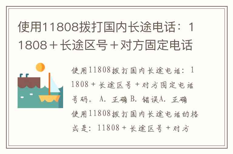 使用11808拨打国内长途电话:11808+长途区号+对方固定电话号码。 A. 正确 B. 错误