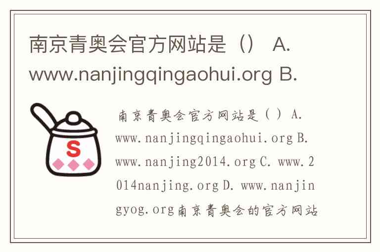 南京青奥会官方网站是() A. www.nanjingqingaohui.org B. www.nanjing2014.org C. www.2014nanjing.org D. www.nanjingyog.org