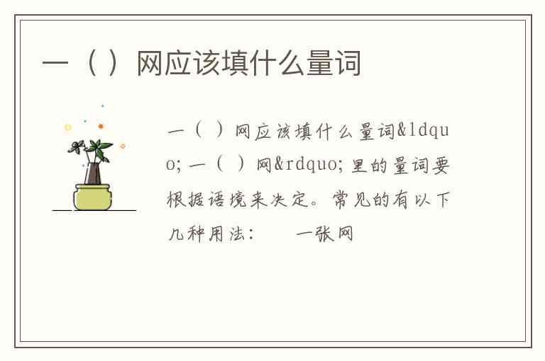 “一( )网”里的量词要根据语境来决定。常见的有以下几种用法: