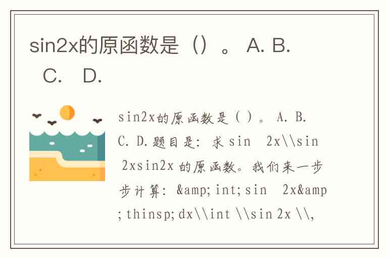 ∫sin2xdx=∫sinu⋅21du=21∫sinudu∫sinudu=−cosu+C