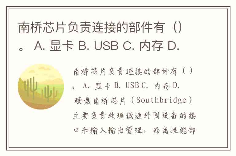 南桥芯片负责连接的部件有()。 A. 显卡 B. USB C. 内存 D. 硬盘