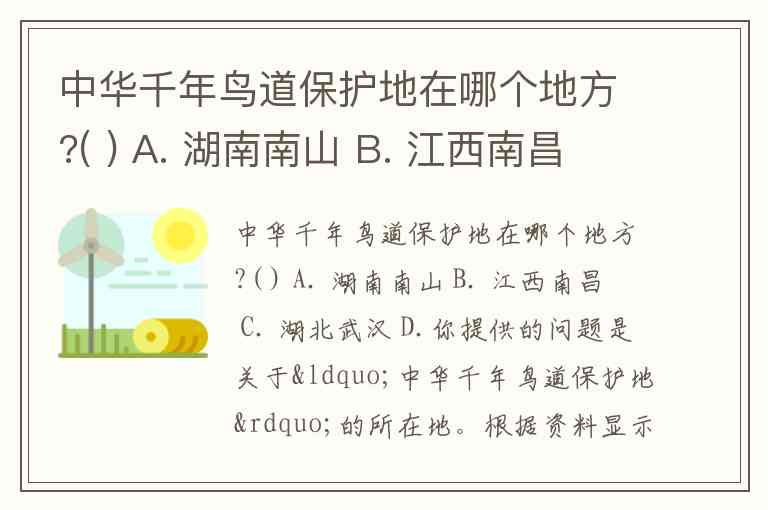 中华千年鸟道保护地在哪个地方?( ) A. 湖南南山 B. 江西南昌 C. 湖北武汉 D.