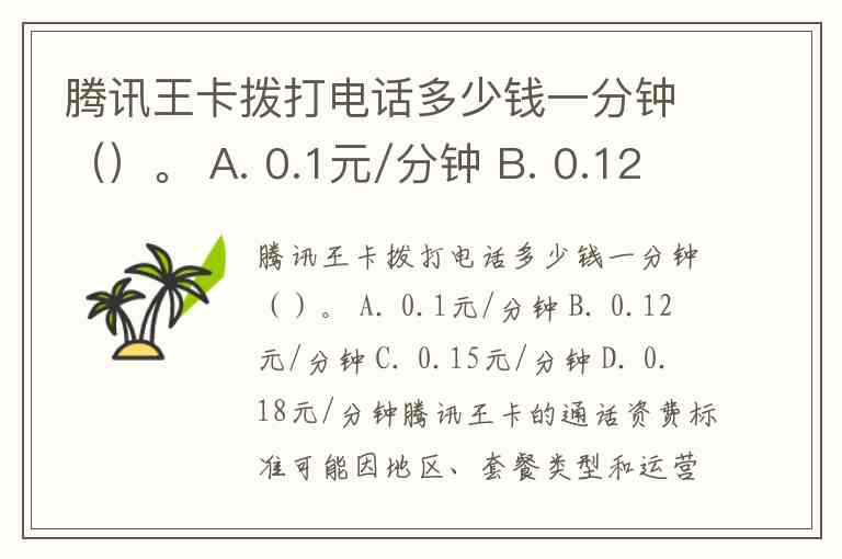 腾讯王卡拨打电话多少钱一分钟()。 A. 0.1元/分钟 B. 0.12元/分钟 C. 0.15元/分钟 D. 0.18元/分钟