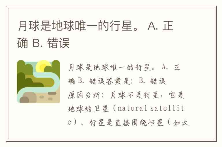 月球是地球唯一的行星。 A. 正确 B. 错误