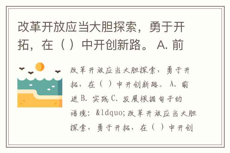 改革开放应当大胆探索,勇于开拓,在( )中开创新路。 A. 前进 B. 实践 C. 发展
